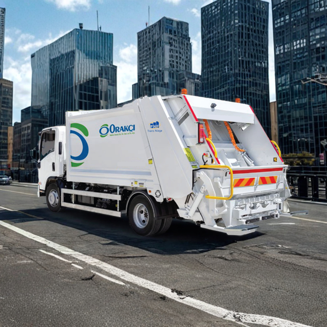 ORV 200 hydraulic garbage compactor body is designed for easy maintenance on narrow roads with relatively small vehicles. The vehicle must have a power take-off (PTO). This truck is suitable for 4x2 or 4x4 vehicles with a gross load capacity between 7 and 15 tons and the required wheelbase for this series.