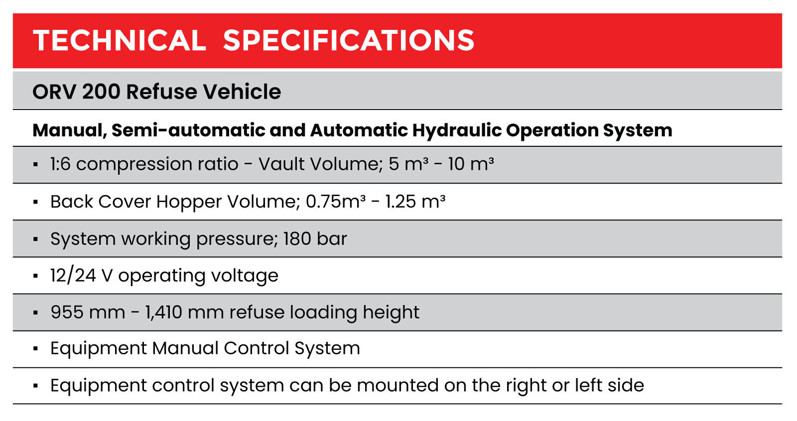 ORV 200 – HYDRAULIC COMPACTOR GARBAGE TRUCK BODY
